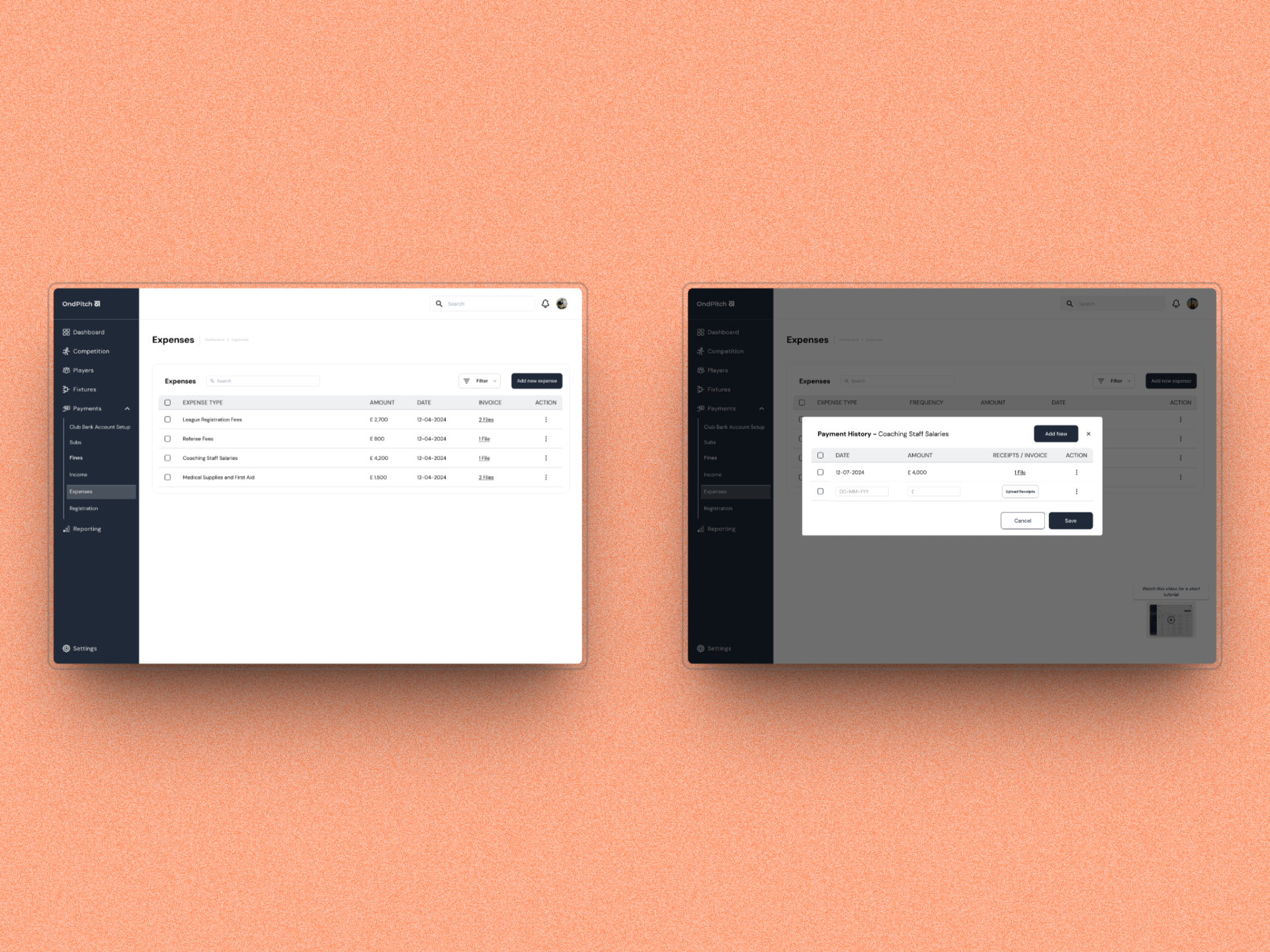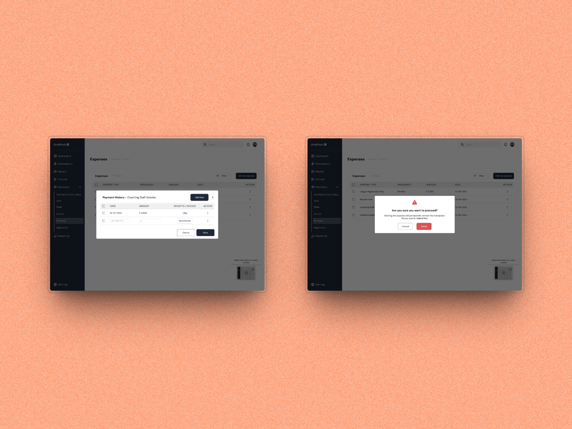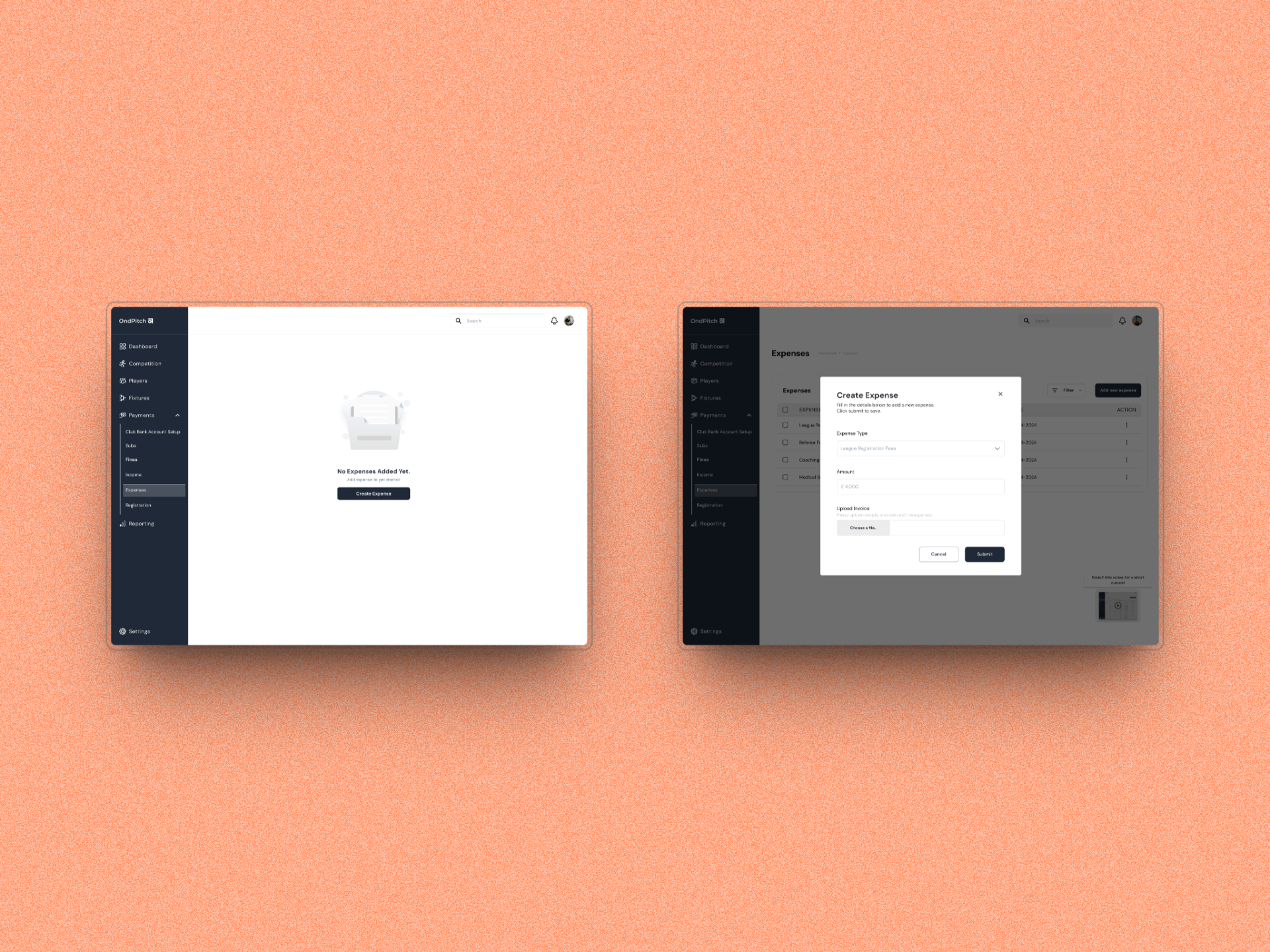 The Expenses feature transformed Ondpitch from just a payment tracker into a true financial toolkit. By enabling both quick entries and scheduled expense logging, it brought peace of mind, structure, and trust to grassroots teams. It helped them manage their money the way real teams do.